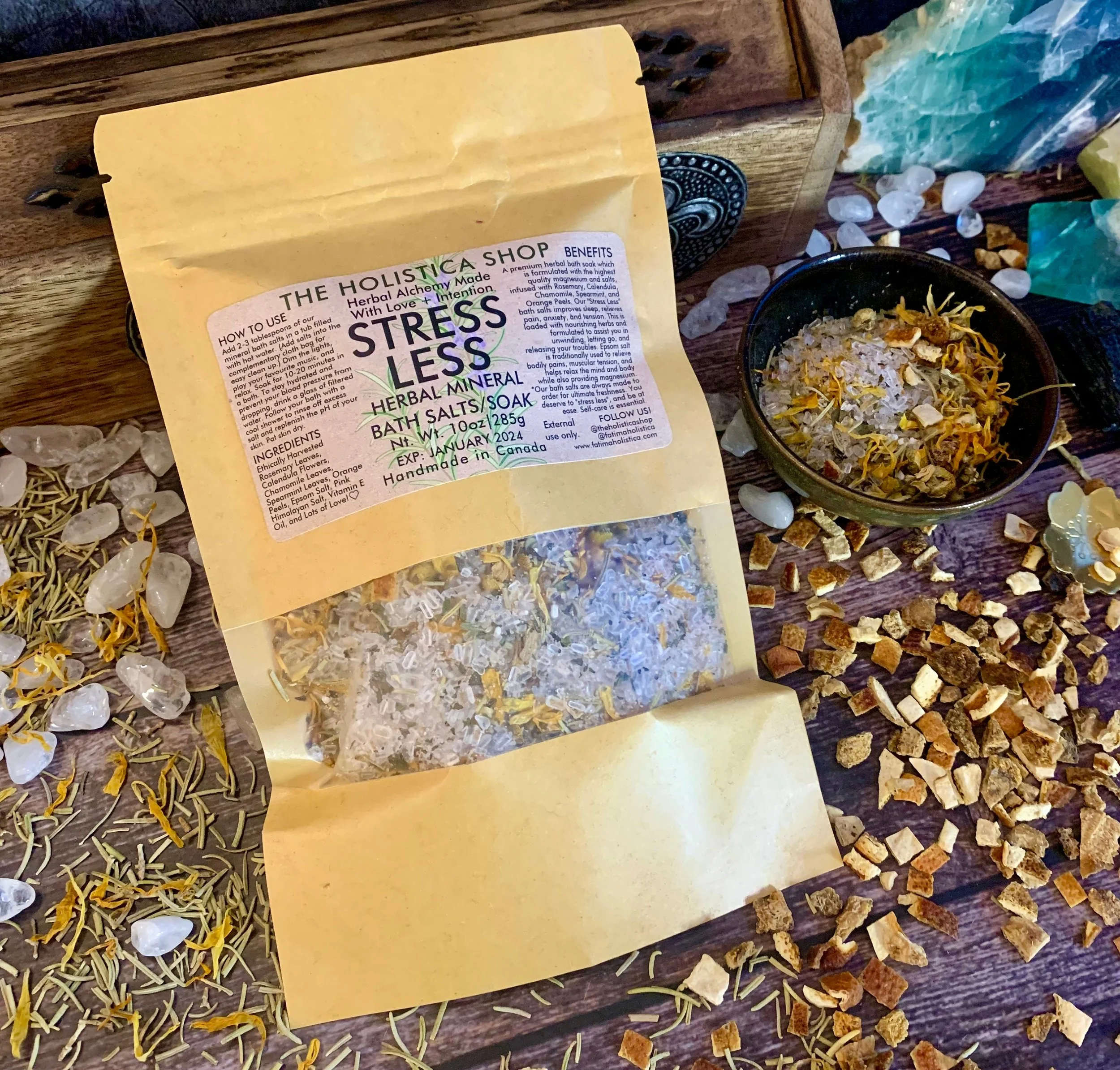 Herbs are purchased from reputable wholesale companies or personally wildcrafted. All Salts are Organic & Non-GMO.